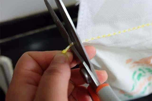 一般线头两边都会留出一点,不好解开,就直接下剪刀剪开吧,我这个是双线面向我的方向,所以我从左手处拆袋的。