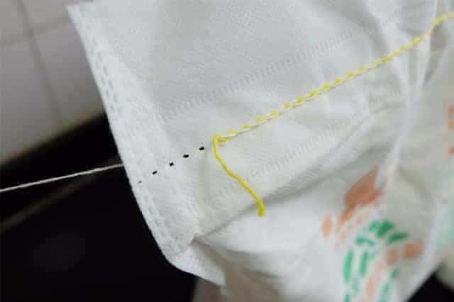 看吧,两根完整的封口线就在手里了,拆面粉袋是不是很简单呢。记住这个小口诀:面粉袋,朝自己,是双线,左边拆,是单线,右边拆,一手一根线,轻轻松松把袋拆。是不是很好记呢!不仅是面粉袋,所有的封口线都是这样的哦。
