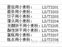 GBGB/T 8608为低筋面粉;GB/T 1355为中筋面粉;GB/T 8607为高筋面粉;LS/T 3201-3208专用小麦粉。