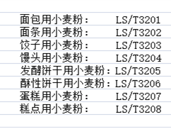 GBGB/T 8608为低筋面粉;GB/T 1355为中筋面粉;GB/T 8607为高筋面粉;LS/T 3201-3208专用小麦粉。