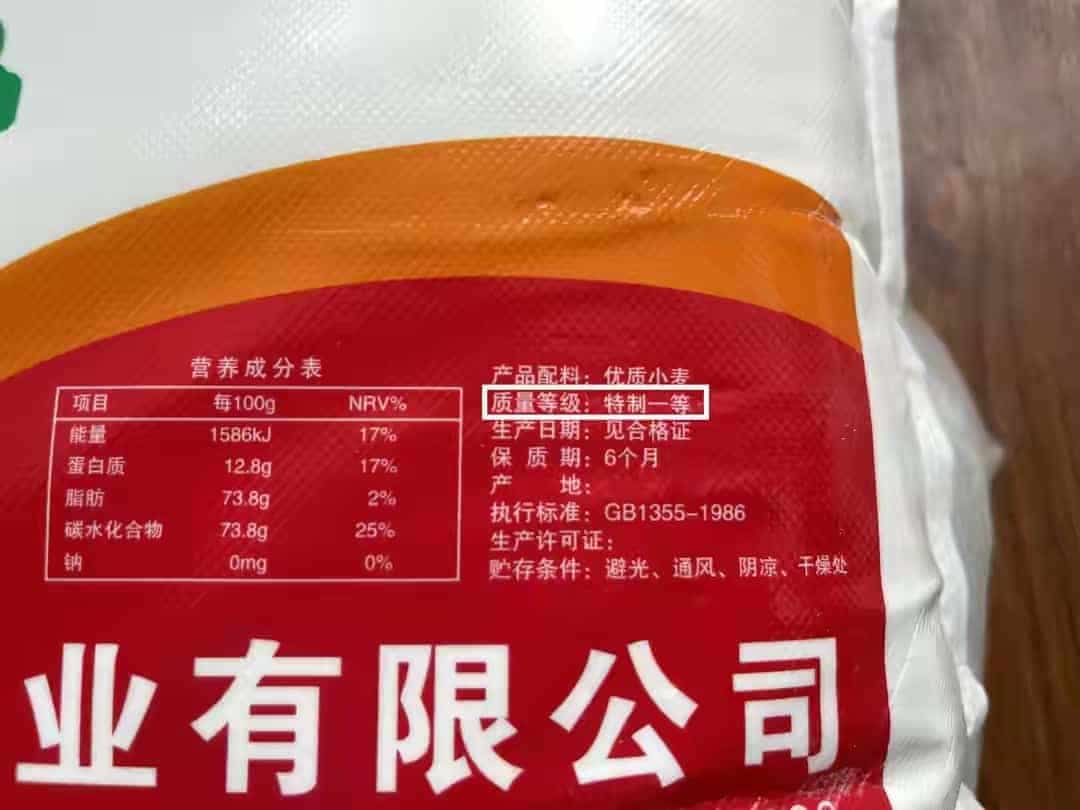 面粉包装袋上的产品标准号即能看出面粉的商品名称,同样也能判断它是否合格。