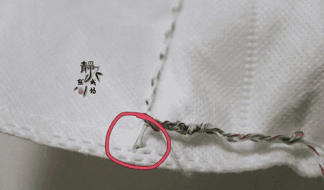 所有的面粉袋和米袋的封口都是一面单线,一面双线。这是一袋面粉,这是它的双线的一面。有的袋子双线更明显,是并排的两行单线,也有这种纠缠在一起的双线。