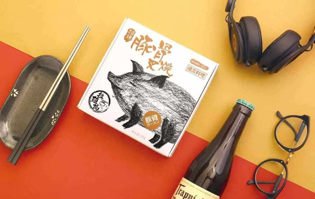 这是一款日式拉面包装,包括面条与调味料的设计。设计上以大面积的单色为底,配上手绘动植物的插画,以不同的种类区分不同的口味。风格简约时尚。