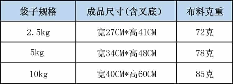 无纺布面粉袋尺寸说明: