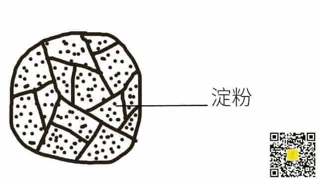 *面团中的淀粉通过加热,吸收水分后发生糊化作用而凝固。淀粉填充于面筋结构之中, 用建筑物做比喻的话,就像是连接支柱的墙壁一样。