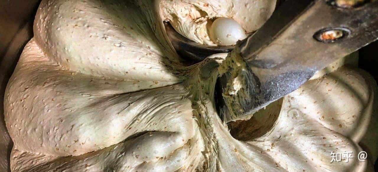 面粉中的蛋白质主要是麦谷蛋白和醇溶蛋白,约占面粉蛋白质的80%,是形成面筋质的主要成分。它们不溶于水,反而可以吸收水分。在吸收水分后,就可以形成面筋,使面团质地柔软。面筋具有弹性、韧性、可塑性和延伸性。面筋在面团中形成立体的网状结构,包裹酵母发酵产生的二氧化碳,酵母不断产气,使面团逐渐增大。