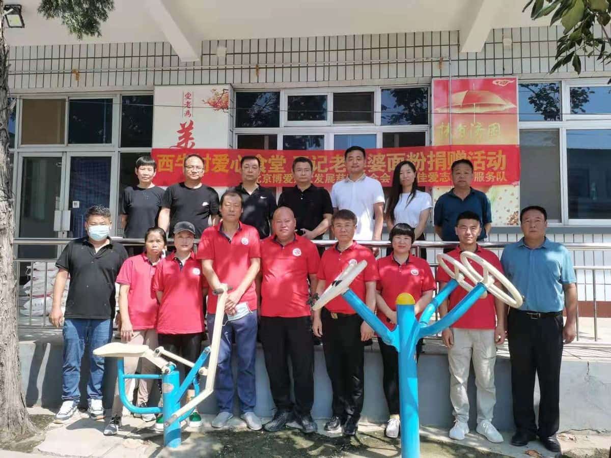 8月21日,河北雄安佳爱志愿服务队志愿者一行十多位,代表北京博爱妇女发展慈善基金会爱心企业“王记老婆婆”石磨面粉厂,将价值七千多元的石磨面粉交到了容城县西牛村“爱心食堂”志愿服务基地。