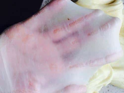 也正因为高筋面粉筋性强,筋度高、延展性和弹性都高,所以高筋面粉适合做面包、吐司,制作时也容易揉出手套膜,成品也是韧性更大、嚼劲更好。除了面包类,它还适用于部分酥皮类起酥点心、松饼(千层酥)、奶油空心饼(泡芙)等。