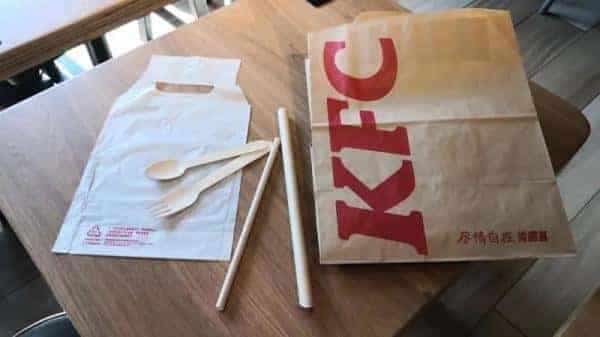 除了超市,本轮禁塑限塑要求最多的是餐饮行业,不可降解塑料袋、塑料吸管、餐具均被禁用。记者走访发现,肯德基、麦当劳等大型连锁餐饮门店已经在新规实行的前几天陆续更换为木质餐具、纸质吸管。
