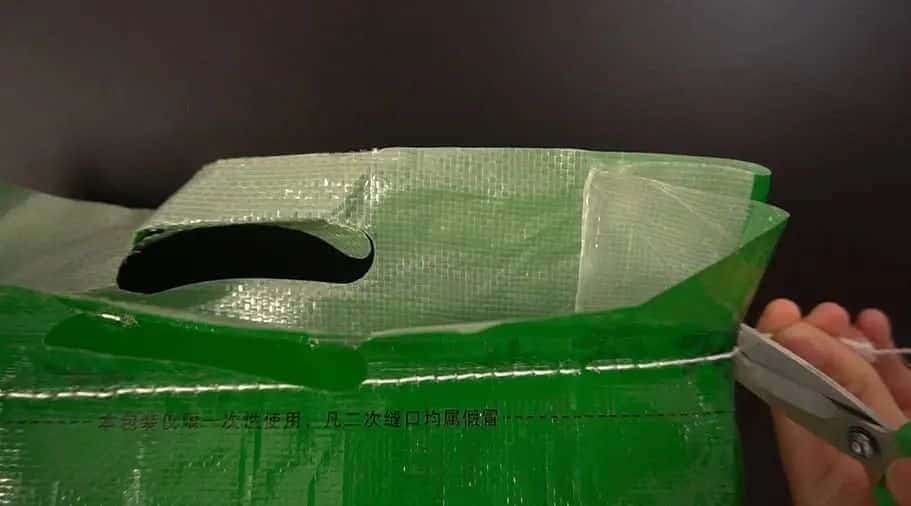 确实这种编织袋加缝线的设计不够密封,远远不如现在很多粮食使用的密封抽气袋子,不过这个包装并非是难以解开的袋子,而是非常容易解开的,因为这个缝线不用剪子剪也不用费力拆,只需要轻轻的拉扯一根线,轻松就可以揭开包装袋。
