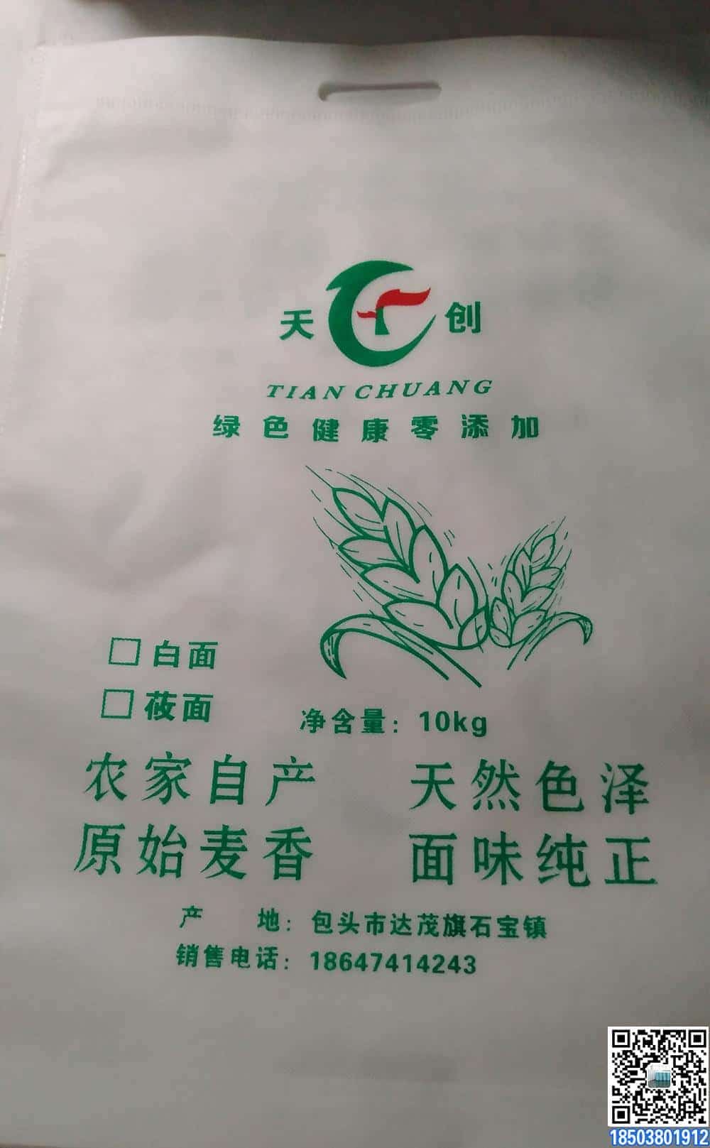 农家自磨石磨面粉袋10kg装,20斤装小批量定制厂家定做