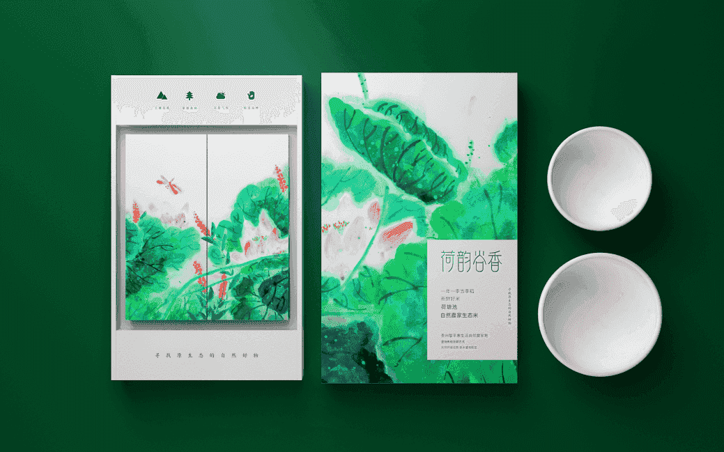 包装以大别山永安水库当地自然环境为插画元素,配以白鹭、大山、山泉、山庄、等自然元素,突出产品“和水鸟共生,与自然共鸣”的概念。