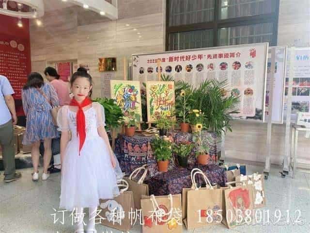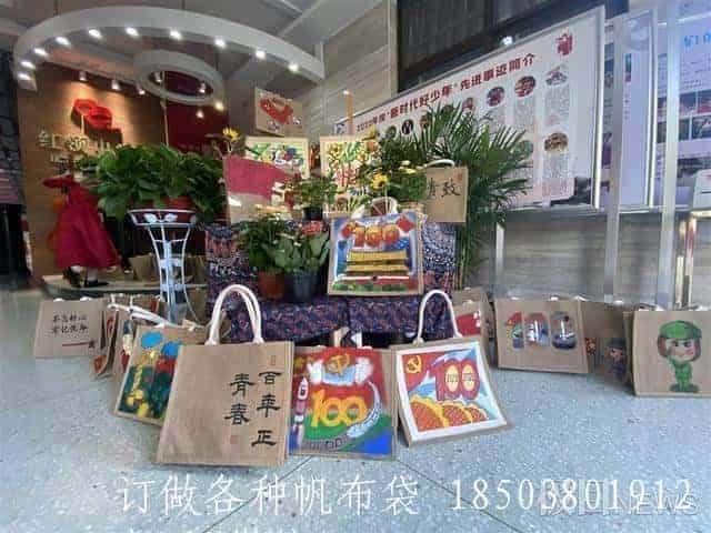 在教学楼楼梯口,极目新闻记者看到,一百三十余个手绘帆布袋陈列在展示台上,每名教师根据自己的喜好进行挑选。“这些帆布袋由学校美术和书法校队的学生手绘而成,还有一部分是学生在课后托管的兴趣班上完成的。”学校美术老师潘瑜介绍,手绘帆布袋的主题为庆祝建党100周年,学生发挥自己的想象力设计草图,再用丙烯颜料在帆布袋上绘制。