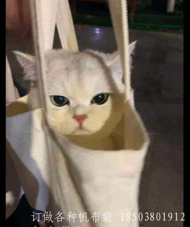 就有这么一位网友,家里养了只猫咪。这一天晚上外面没有太多人了,于是就想着带它出来透透气。因为家里也没有准备太空包什么的,于是就拿了一个白色的帆布袋,将猫咪给装在里面就出来了,大小也正合适,猫咪就露出头看看外面!这也正适合猫咪的性格,不就是喜欢暗中观察吗?