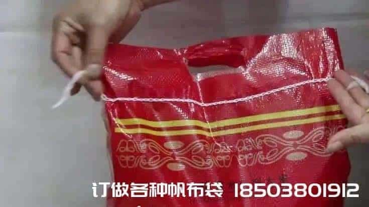 小米袋帆布袋制作电话/微信:15838231350有时候面对面粉袋和大米袋,很多人都会感觉头疼,因为这个袋子上面是缝线的,一点点剪开这得好长时间,但是解也解不开,不明白为什么要有这种设计,既难以解开,还不够密封。