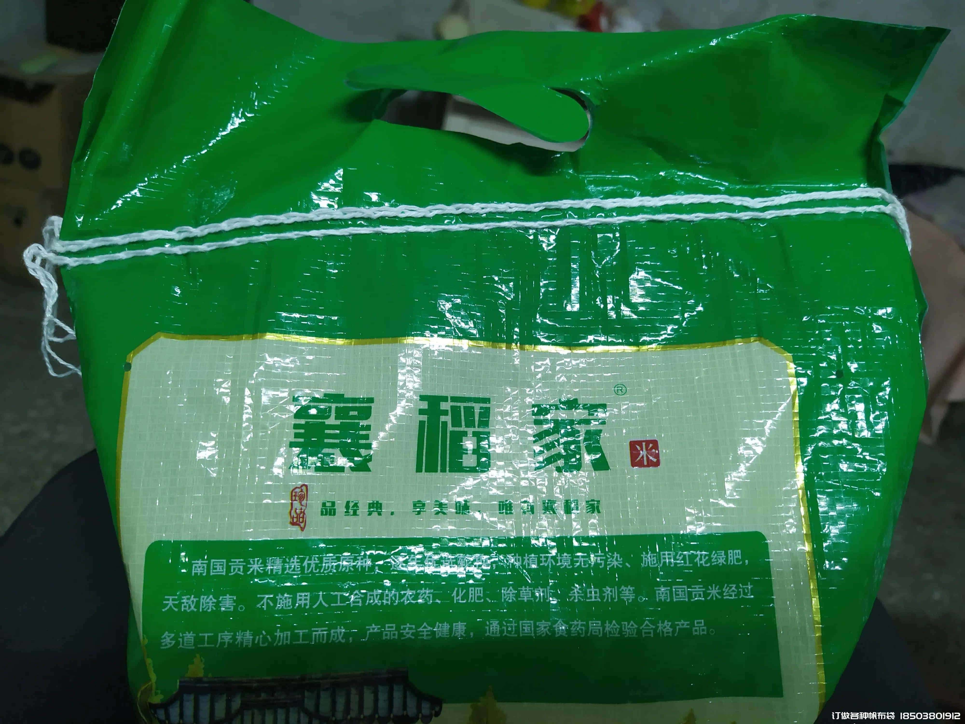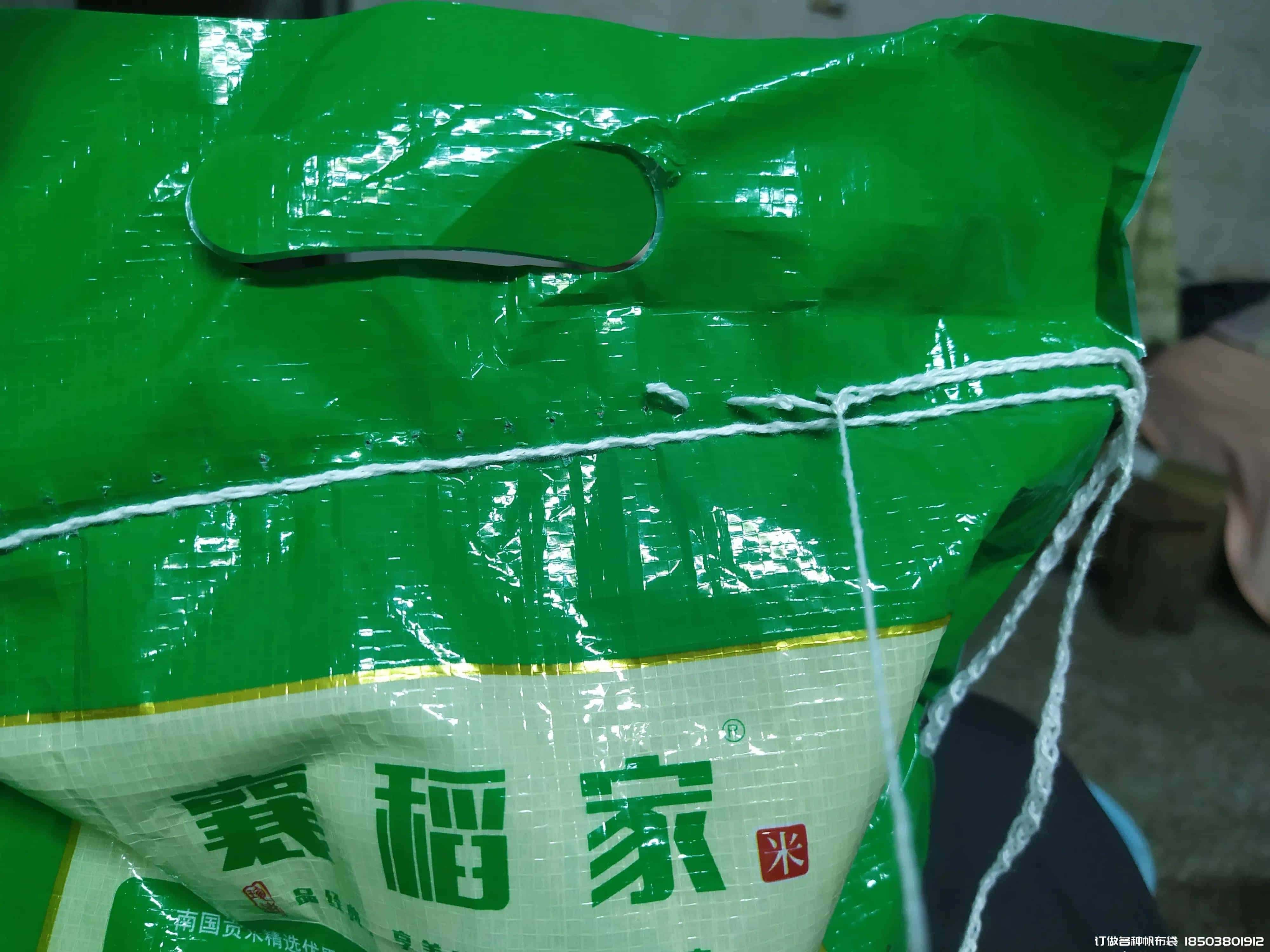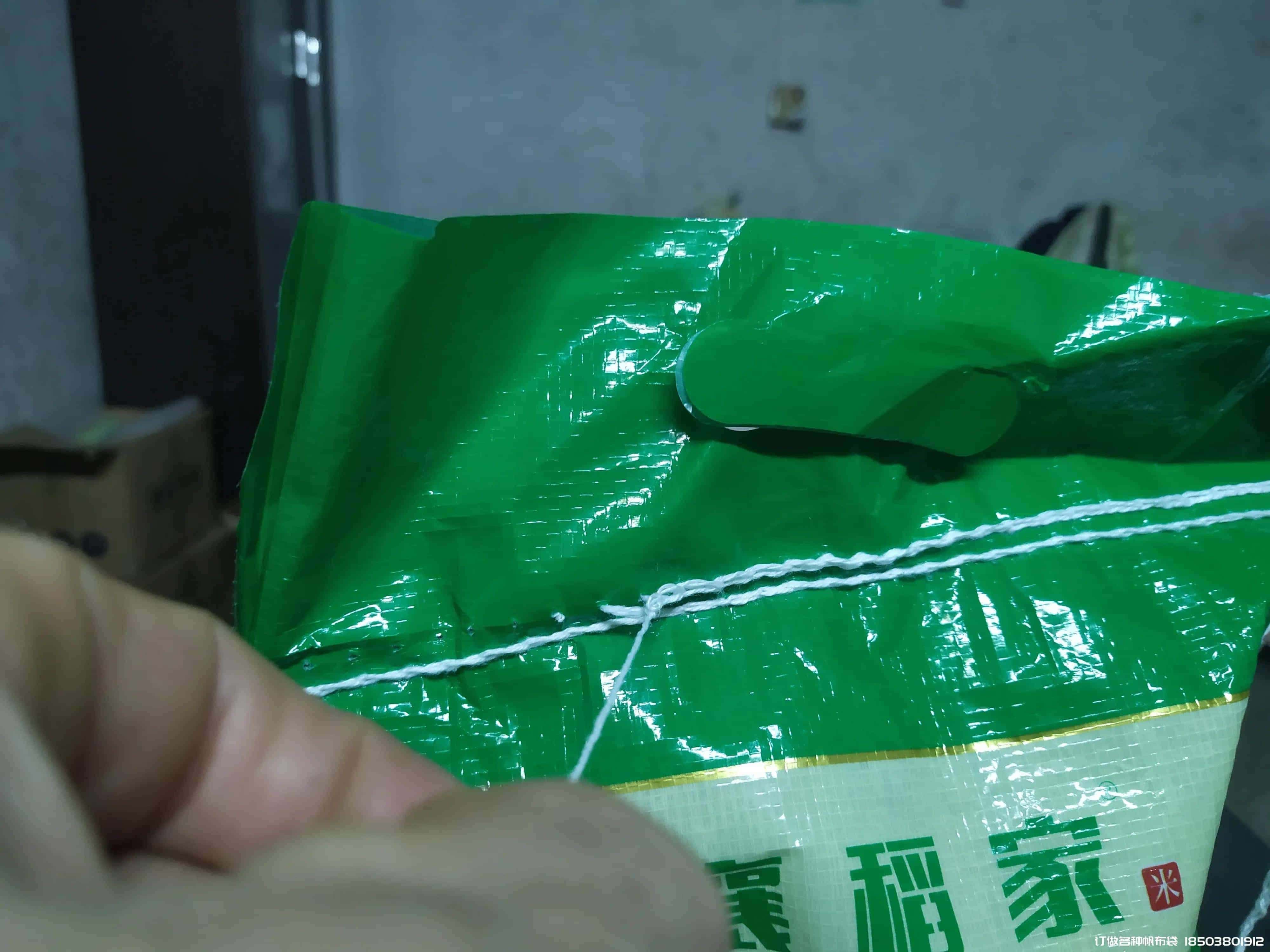 这是一个米袋子有两层封口线,这一面是双线,下一面是单线°