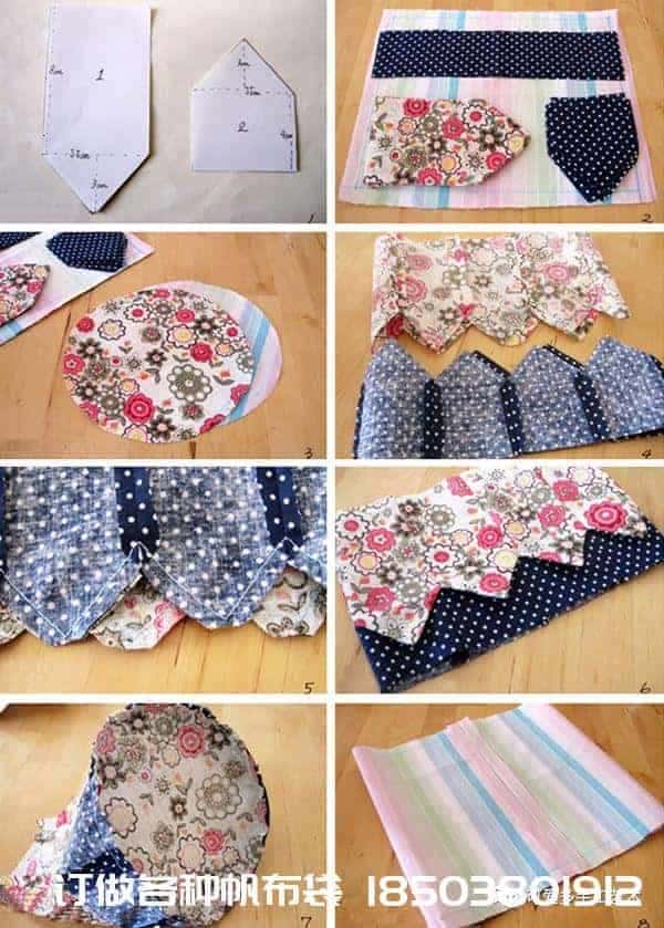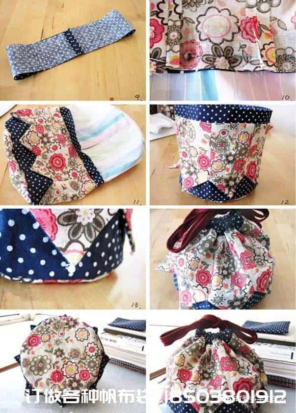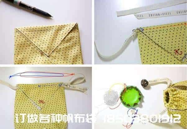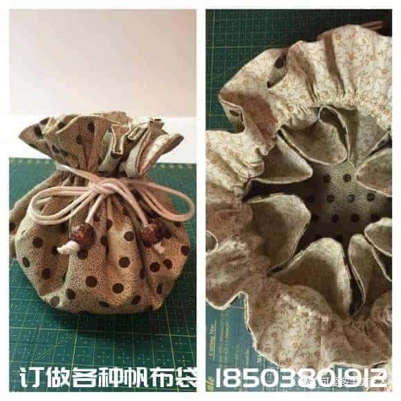 帆布包装帆布袋制作电话/微信:15838231350一提到束口袋,大家是不是只会想到,一个袋子做成方形的,穿上一根绳,一拉上,就算是一个束口袋了,它仅仅只是收纳一些无关紧要的小东西?东西不多,它就无法出场了?那你就OUT了,除了多层的拉链包包,束口袋的的功能也可以很强大,除了颜值高,还能做成多层的,东西分类收纳,一根绳子最后一拉,以后打开,真的是包罗成有! 来源 | 可爱多手工艺术 ID:ke-aiduo 各种创意束口袋DIY 做成花的,水果的,小鱼的,多层的,样样行,以后有好看的碎布千万别闲置了,都拿出来这样利用吧! 图解制作过程 我们来学习一个多层束口袋的做法,一打开,里面就可以分隔成多层,放上你需要收纳的精致小物。 还能当成收纳针线或手工材料的收纳袋,做成立体的摆放着,当成篮子一样用了。 剪三个不同大小的圆车缝,就能变成更多层了。 看做法 分别准备两块布,两块做成小圆,帆布包装帆布袋制作电话/微信:15838231350另外两块做成大圆。至于做多大,视乎你想把束口袋做成多大而定。自己喜欢就好。就是两个圆的大小不要相差太大。 两个圆缝好之后,翻回正面,相叠。 按如下图车缝,中间可以分隔,小圆的边缝车缝上一条穿绳子的“轨道”,最后穿上绳子一拉,就完成了。 我们来看详细教程 ▼ 家里有些闲置了的衣服裤子或牛仔裤也试着利用一下。 还有这种一块布就变成多层收纳的束口袋。 戳视频查看做法 ▼ 更多束口袋做法 束口袋是不是比想像中的好用?准备几块布,做几个吧! 相关推荐 订阅号:服装云教育