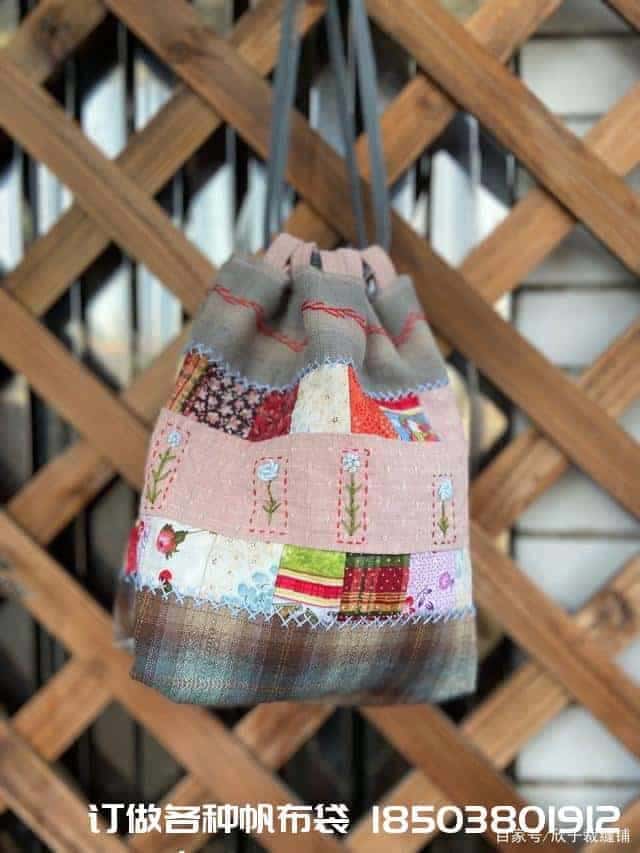 裁缝小妙招,拼布抽绳束口袋含图纸和详细步骤
