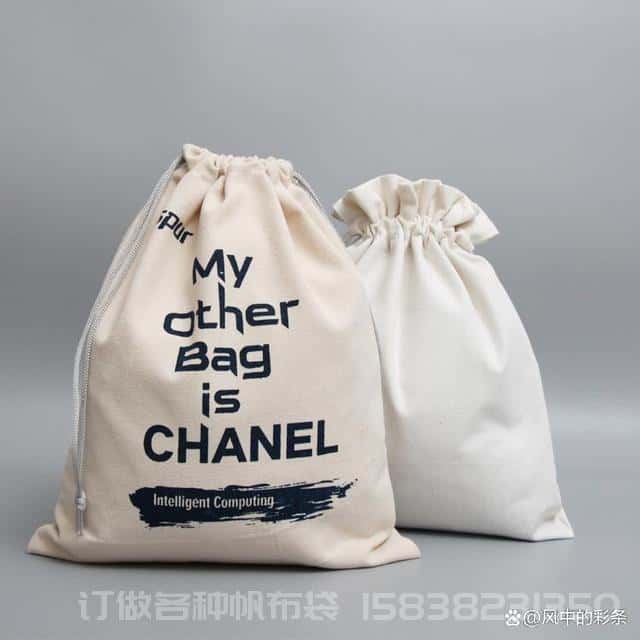帆布拉绳包拉绳帆布包的使用,大多为收纳使用,装一些礼品或特定的物品,或者装一些米面等的小米袋子等。应用于一些特定场景,主要款式分为平口和木耳口的袋子,绳子选择多种多样,可以随时搭配。