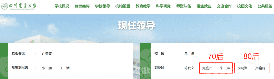 他还担任《自然-生物技术》《自然-通讯》《美国国家科学院院刊(PNAS)》等十余种国际知名学术刊物审稿人,审稿百余篇。在国际国内学术会议作学术报告20余次,连续四届受邀在全国动物遗传育种大会上做大会报告。2017年受《遗传》杂志邀请,作为专刊组稿专家并主笔撰写《组学时代农业动物遗传育种研究》前言。在大家心目中,他就是个痴迷科研的学术达人。2003年,李明洲获学士学位,2008年获博士学位后留校任教。2011年晋升副教授,2012年破格晋升教授。2012至2014年在北京大学从事博士后研究。获北大-清华生命科学联合中心 “ 杰出博士后”。2010年任动物遗传育种研究所猪研究室主任,2015年兼任动物基因组学研究室主任;2015年任动物科技学院副院长;2016年当选校党委委员,任研究生院副院长(正处级);2017年任研究生工作部部长、研究生院副院长。2020年2月,李明洲正式被任命为四川农业大学副校长。四川农业大学(Sichuan Agricultural University),简称“川农大”,由教育部、四川省人民政府、成都市人民政府共建,是国家“双一流”世界一流学科建设高校、“211工程”重点建设高校。四川农业大学源自1906年创办的四川通省农业学堂,1927年和1935年两次并入四川大学,1956年由四川大学农学院整体迁往原西康省省会雅安成立四川农学院,1985年更名为四川农业大学。学校农业科学、植物学与动物学、生物学与生物化学以及环境与生态学 四个学科进入ESI国际学科排名前1%。