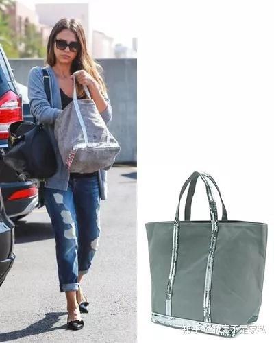 Jessica Alba的帆布袋,来自Vanessa Bruno。