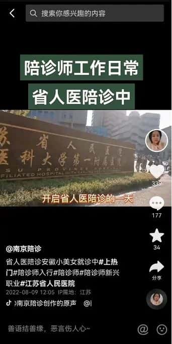 孙静把自己的陪诊日常发到直播平台上,一个视频10秒钟左右,画面中有几个大字“陪诊师工作日常”,底下还有字幕,加上标签、配上直播平台流行的背景音乐,总有人点赞。她自己也没想到,有一天能有上万的“粉丝”。