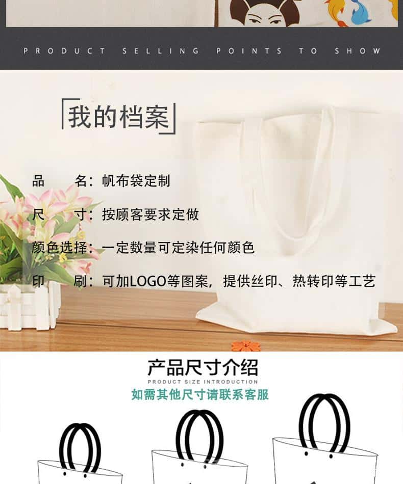 帆布袋定制根据款式、数量、工艺、材质、印刷等不一样,商品的