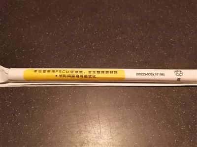 昨天中午,记者在万达广场二楼麦当劳注意到,原本放置的一次性塑料吸管已被纸吸管代替,在纸质吸管的包装上还写明了“本吸管采用FSC认证原纸,全生物降解材料”字样。
