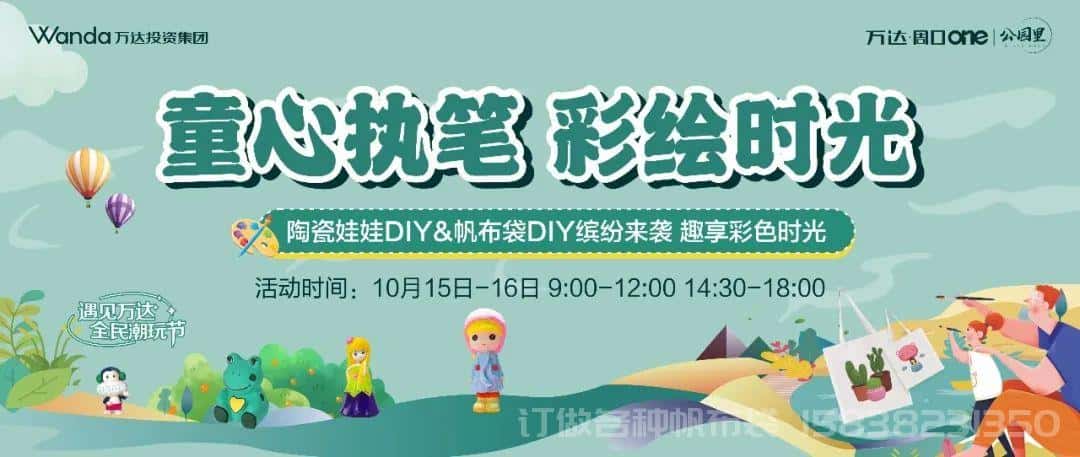 每个孩子都是天生的画家,纯白无暇的底色,倒映孩子们的奇思妙想。本周末,10月15日-16日,遇见万达·全民潮玩节——陶瓷娃娃&帆布袋彩绘DIY缤纷来袭!