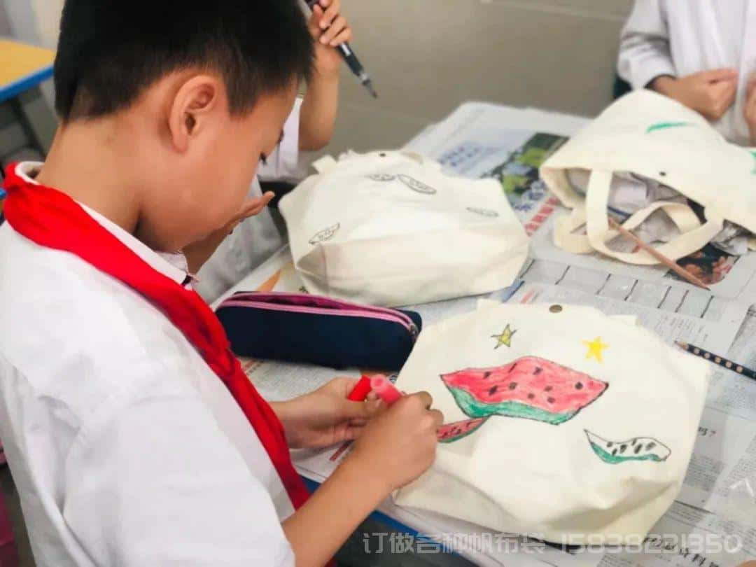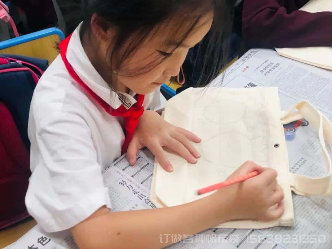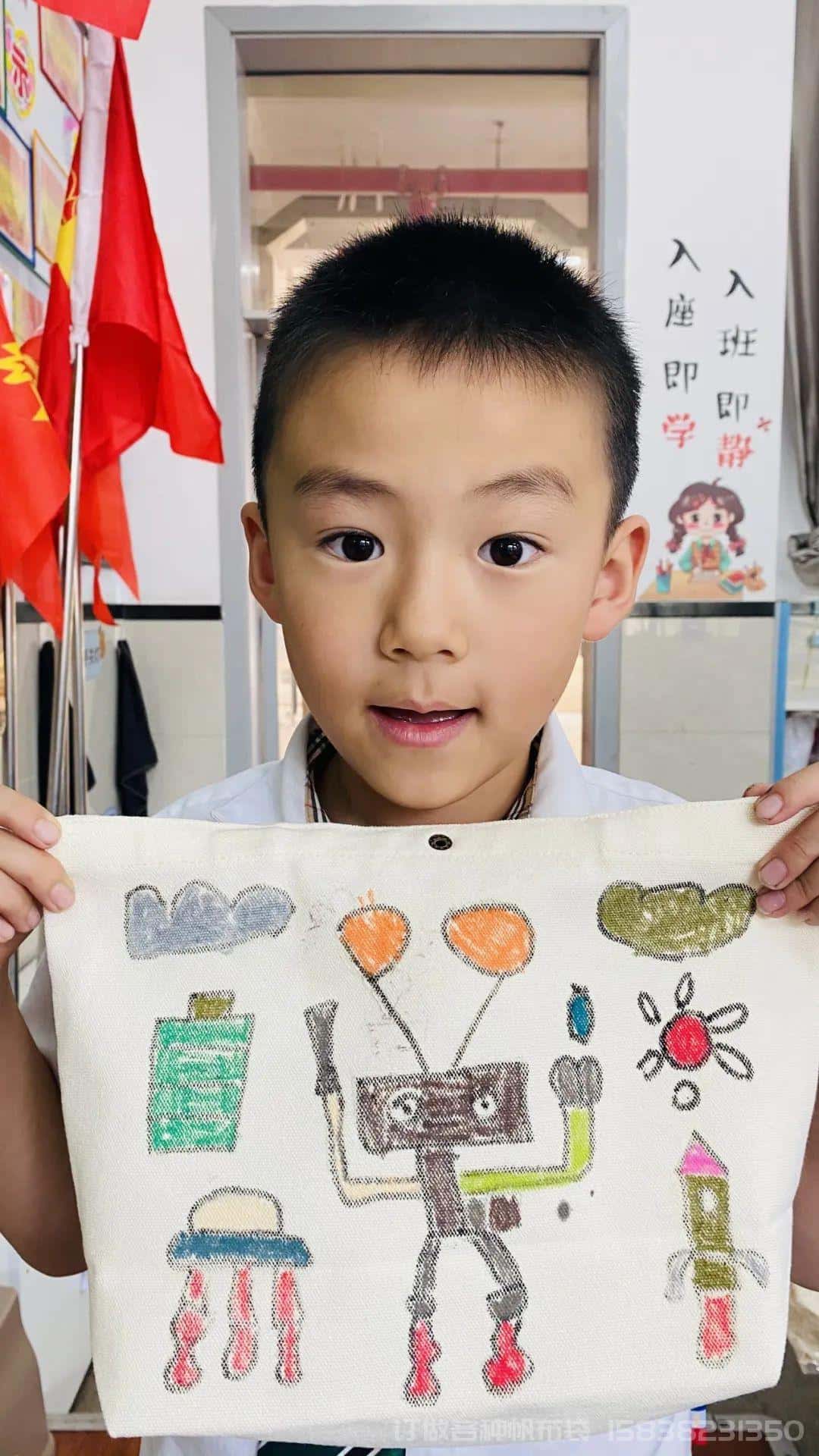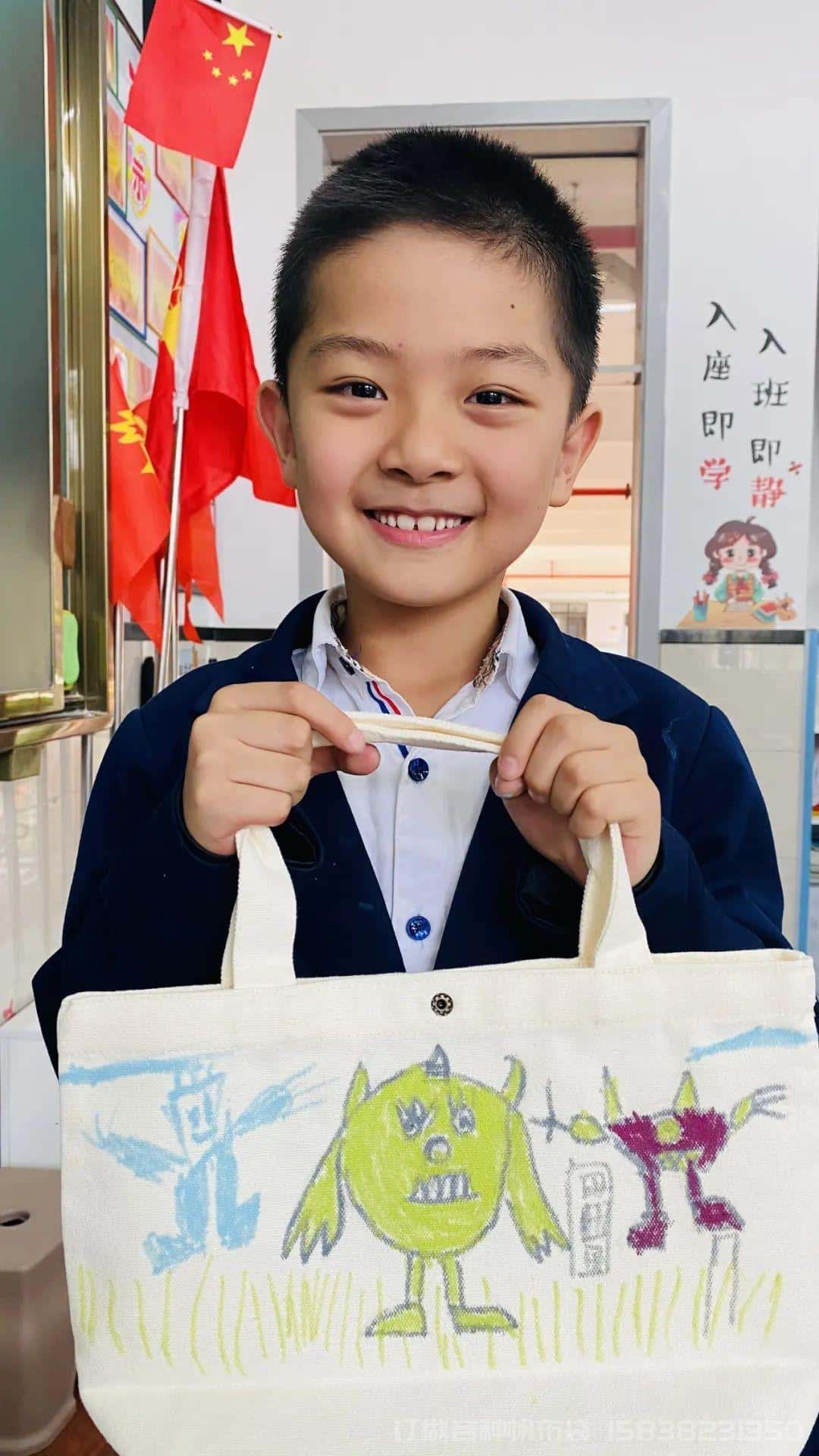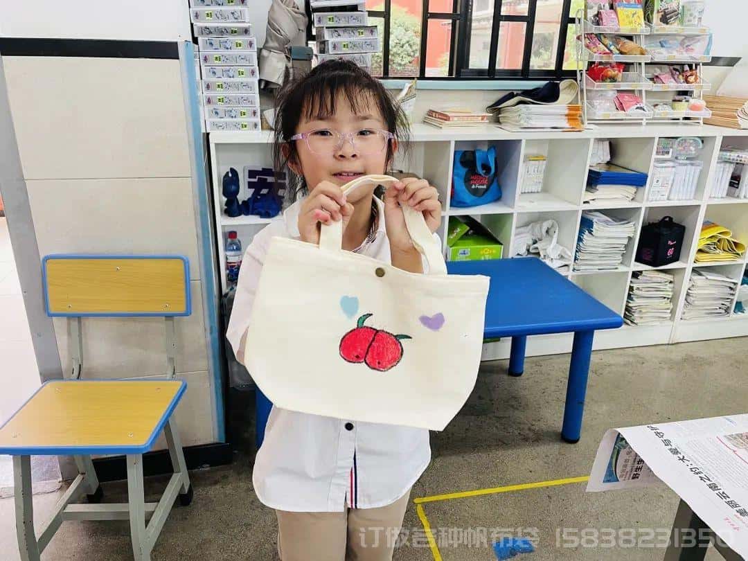 浓郁的艺术氛围在这里呈现,崭新的艺术华章在这里谱写。孩子们神情认真而又愉悦,在帆布袋彩绘DIY中尽情发挥创造,描绘天真烂漫的想象。原本纯白的帆布袋,在孩子的笔下,变成一份充满创造的“劳动成果”,把幸福美好 “袋”回家。