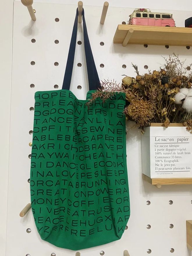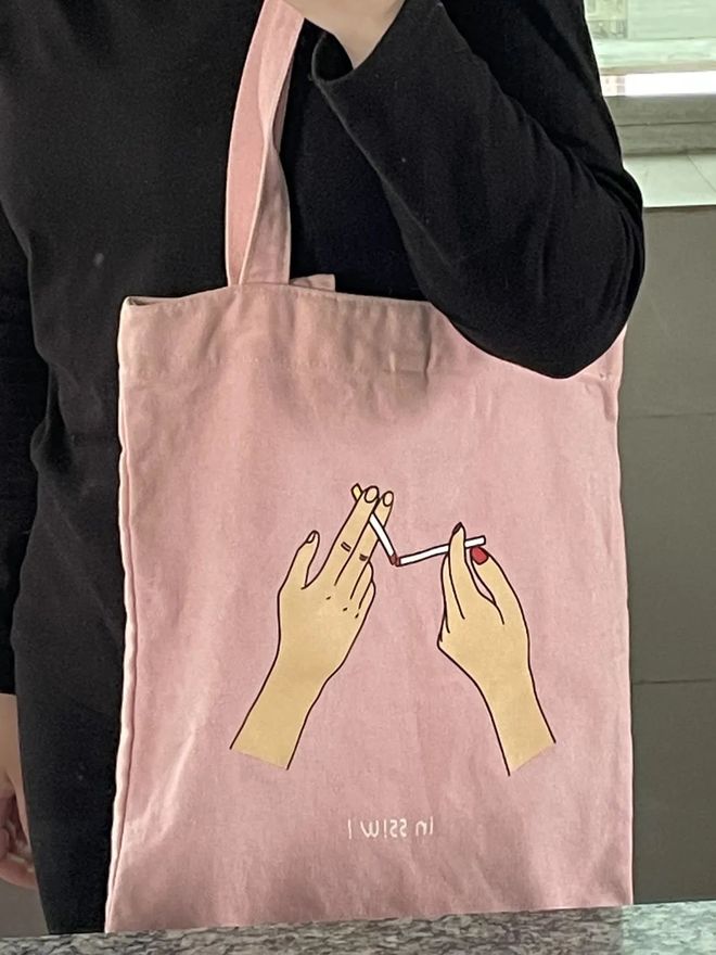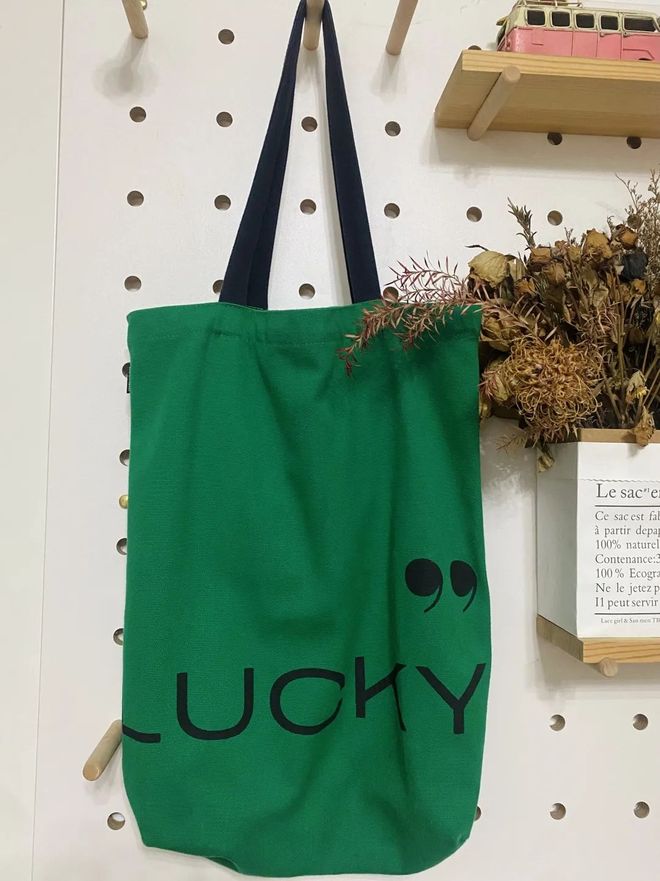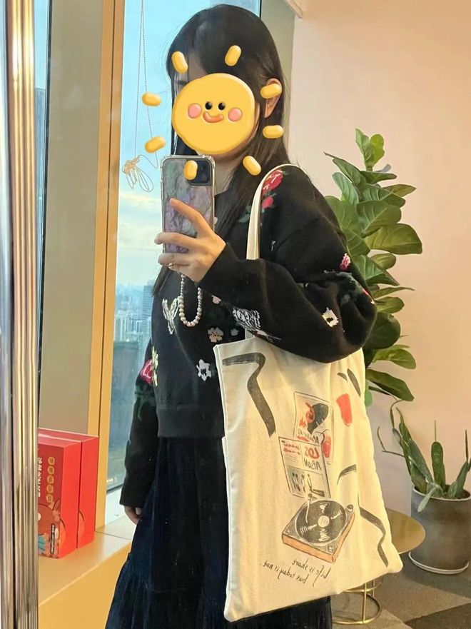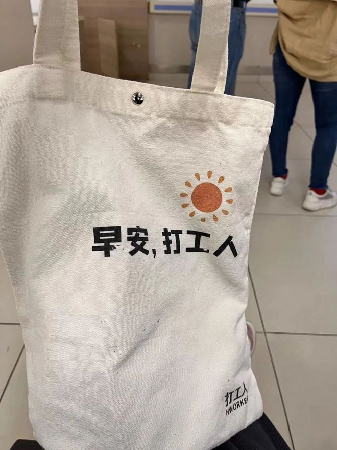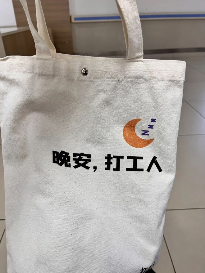 这只帆布包说来还蛮有意思的(笑),它是我在豆瓣“打工人小组”中的奖。有段时间不是很流行打工人语录嘛,那时候紧追潮流疯狂玩梗,现在想起来也是怪搞笑的。