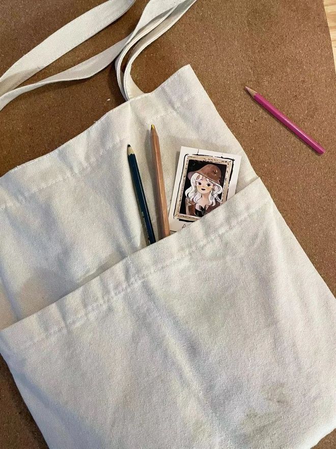 另外还挺想说说它背面两个外夹层的设计的,一般的帆布袋会把夹层设计在里面,那样其实装不了什么,有点鸡肋。像这样外部的口袋设计,日常使用起来更方便,可以放放水之类的物件,又很好拿取。我平常经常用它们来装画笔~