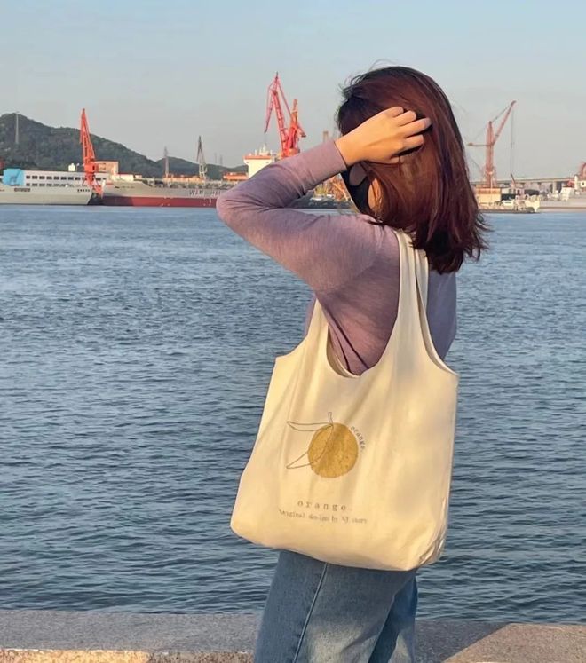 它是我去年夏天为了去万宁度假买的。当时看了眼包柜发现基本都是黑色包,和夏天不够搭。然后我就在某宝上搜罗好看的帆布包,一眼看中了它。