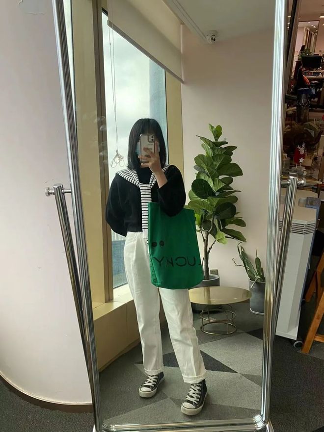 我觉得这个绿很好看,虽然饱和度高,但是是那种有质感的颜色。像我平常穿黑白灰的基础色单品偏多,搭配它就还蛮亮眼的,所以对我来说利用率挺高的。