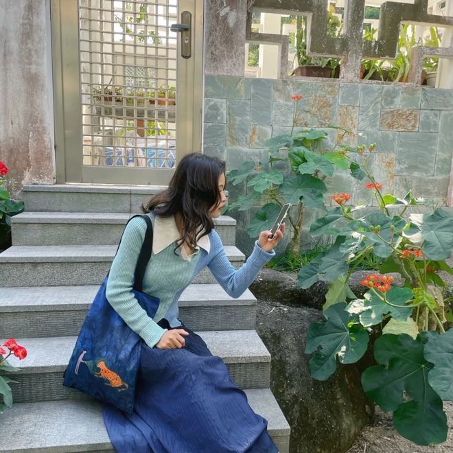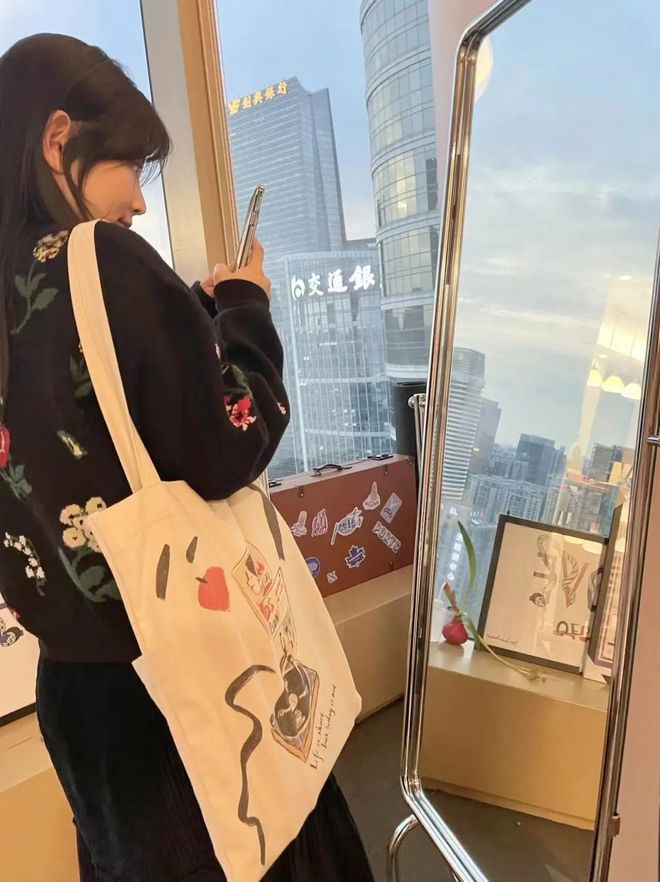 而且大家有没有发现,现在很流行背一个小包,再加一个帆布袋出门,时髦又实用。