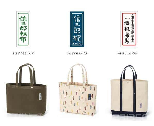 白底绿字的“信三郎帆布”代表着纯色没有花样的包款;深蓝色底白字的“信三郎布包”代表有花样或采用棉麻混纺的包款;而“一澤帆布製”则是延续着家族的传统,制作着最经典的包款。