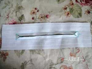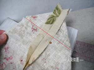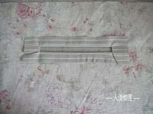 ▼13.把加厚包底用的布片两边往内各折1cm,熨好: