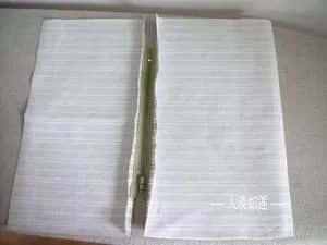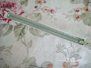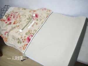 ▼4.拿做拉链内袋的两块棉布,即30*20cm的两片,把拉链缝在两块布之间,注意拉链的背面与棉布正面相对。