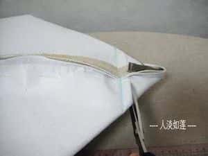 ▼16.两块里布都缝上拉链,用码装拉链的话,缝好后可以把拉链拆开,两片里布分开,后面的步骤就比较好缝: