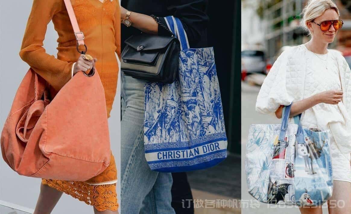 大家在经历了,单肩帆布包、手拿帆布包,斜肩的帆布包出镜率也是非常高的。这一类的包包,大家会经常在学生当中看见。