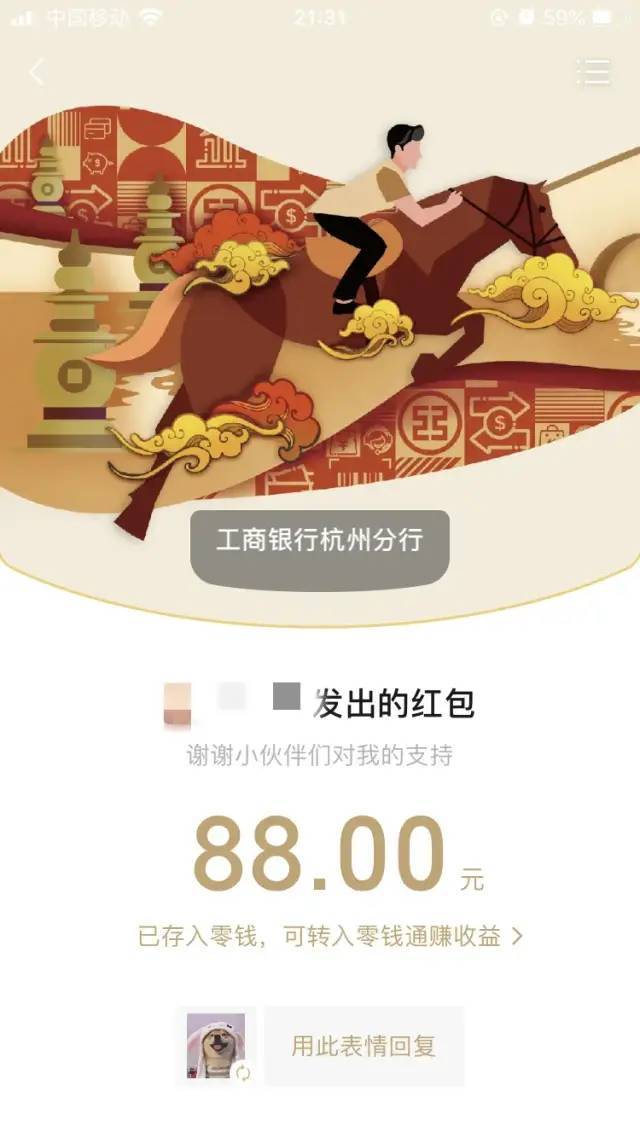 活动期间,用户登录手机银行,每天均可能有1次机会,弹出微信红包封面提示框,点击弹框按钮进行领取。