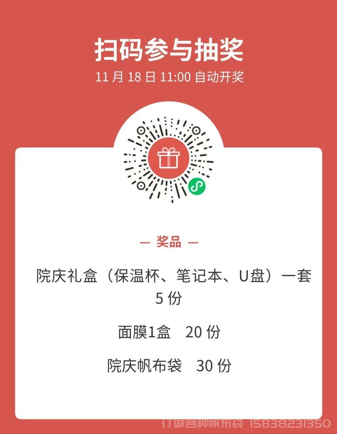 3、奖品设置帆布袋80个,面膜180盒,U盘10个,领取时间11月14日-11月18日下午2点半到5点。数量有限,先到先得。