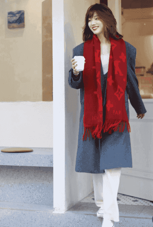 深灰色的大衣十分百搭和耐看,大家之所以喜欢深灰色,最关键的还是深灰色的显瘦效果不错,微胖的妹妹也可以穿。但是这种颜色比较基础,如果你希望穿的更时髦,搭配一些靓丽的配饰会很不错,博主就选择了红色的围巾,看着实在是很美。