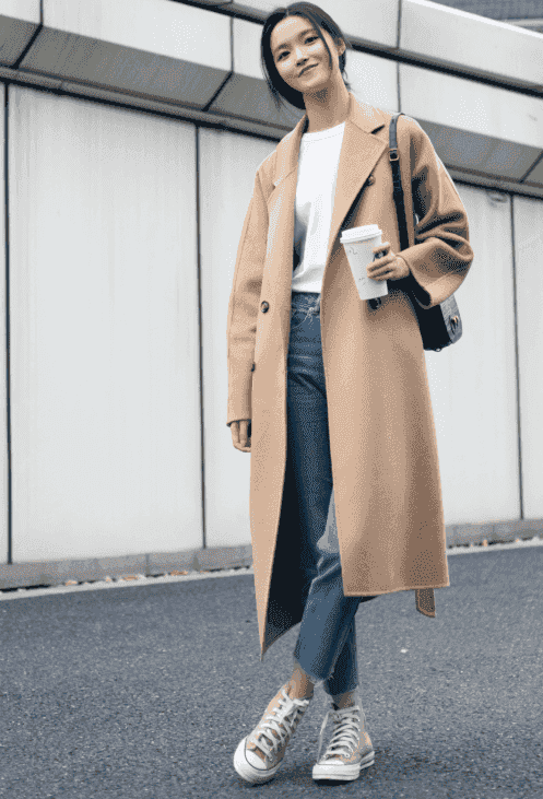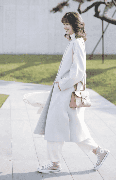 穿大衣别配马丁靴了,其实时尚圈流行的鞋子很多,除了短靴,上面的帆布鞋都是很美的, 潮人们也通过帆布鞋的搭配来显示出了自己的时尚品味,活力满满,潮范十足!