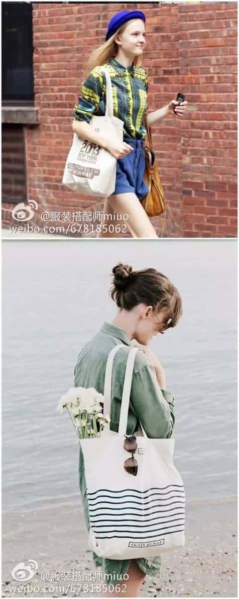 帆布袋不仅可以配简约休闲风,连复古清新文艺范也可以融合~