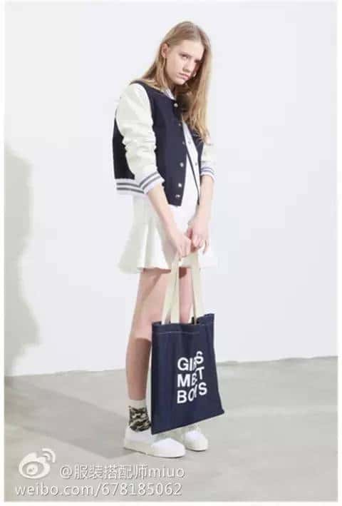 休闲的穿搭,配上简洁的白色字母帆布袋。