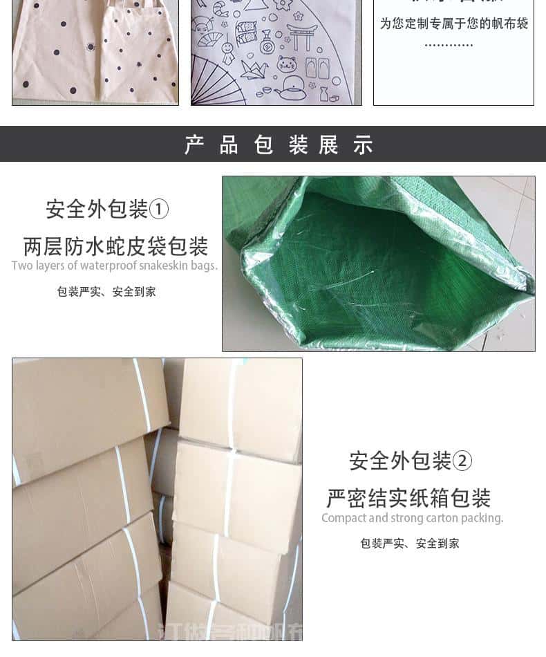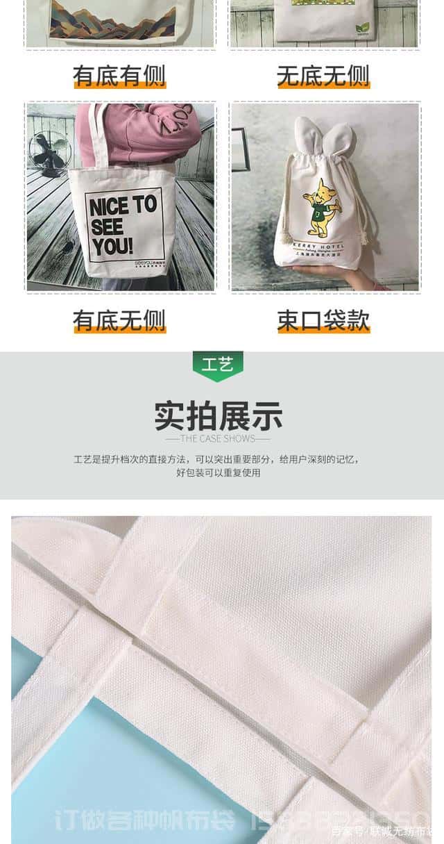 帆布袋定制根据款式、数量、工艺、材质、印刷等不一样,商品的