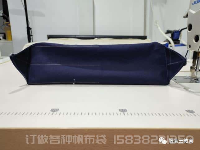 9、在袋口用记号笔将上带袢的位置标记出来;