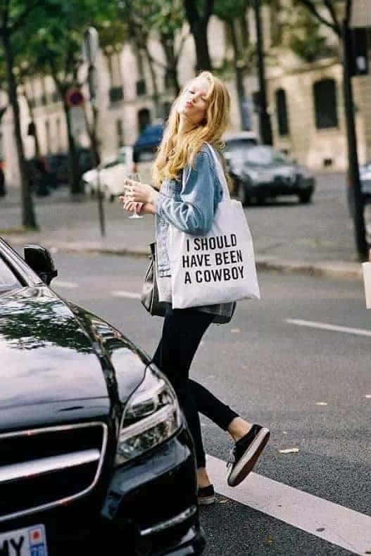 6. 帆布袋就一定不要花大价钱买,印着广告语的帆布袋才够 Casual。