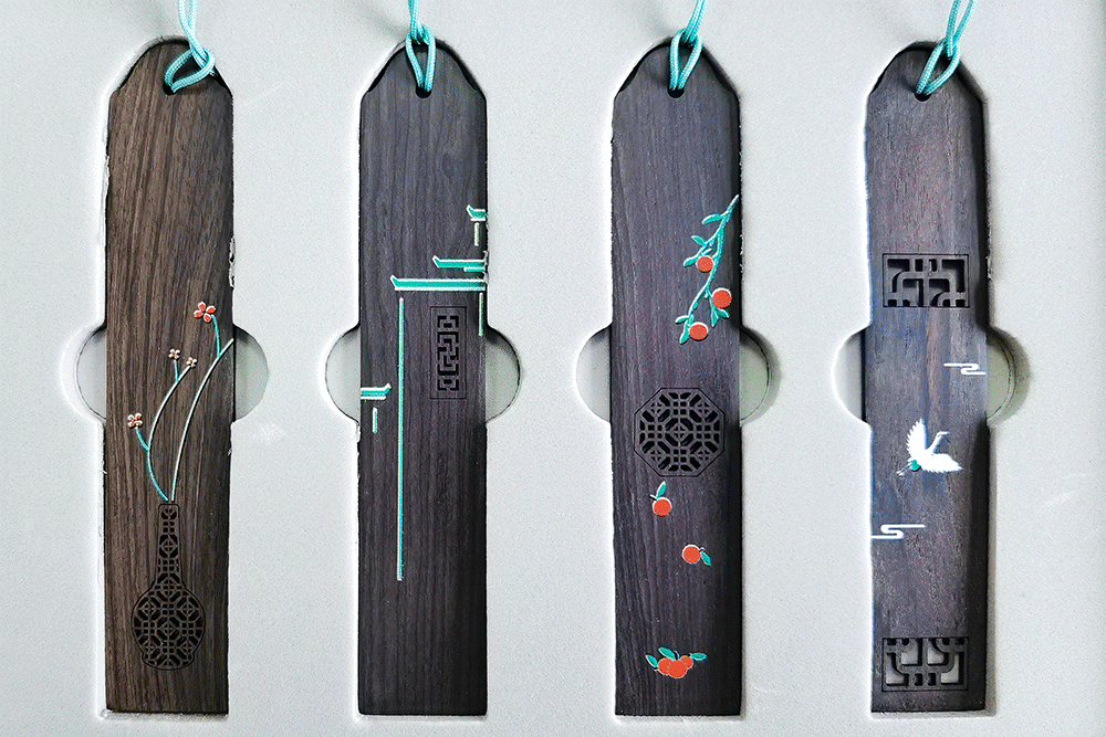 古韵慈溪红木书签使用镂空工艺,古色古香中具有穿透感。